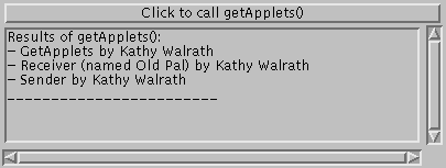 Previous | Next | Trail Map | Writing Applets | Communicating with Other Programs