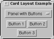 Below is the code that creates the CardLayout and the components it manages. (Here's the whole program. The program runs either within an applet, with the help of AppletButton, or as an application.)